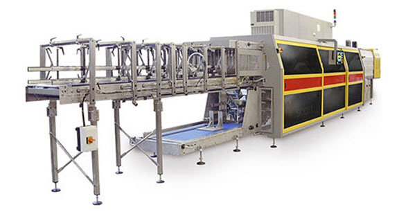 This machine is suitable for the automatic delivery , ordinance and placing into tray (or flat paper tray or only film) + film for plastic PET , glass bottles or metal tins including conveyor , forming and placing the bottles/boxes into tray , shrinking tunnel.
