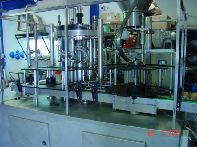 This machine is suitable for the filling and capping of glass bottles or metal cans with press on plastic caps.