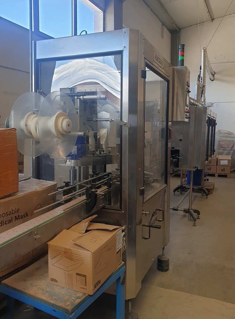 The machine is available with shrink tunnel and conveyor belt for bottles