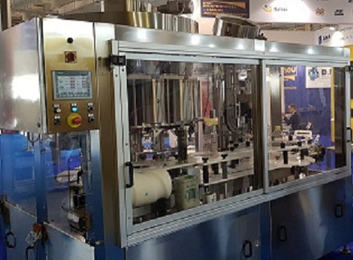 Automatic rotary-volumetric filling and capping machine with 12 volumetric cylinders and a closed head. Suitable for plastic caps for liquid products such as olive oil , juices etc