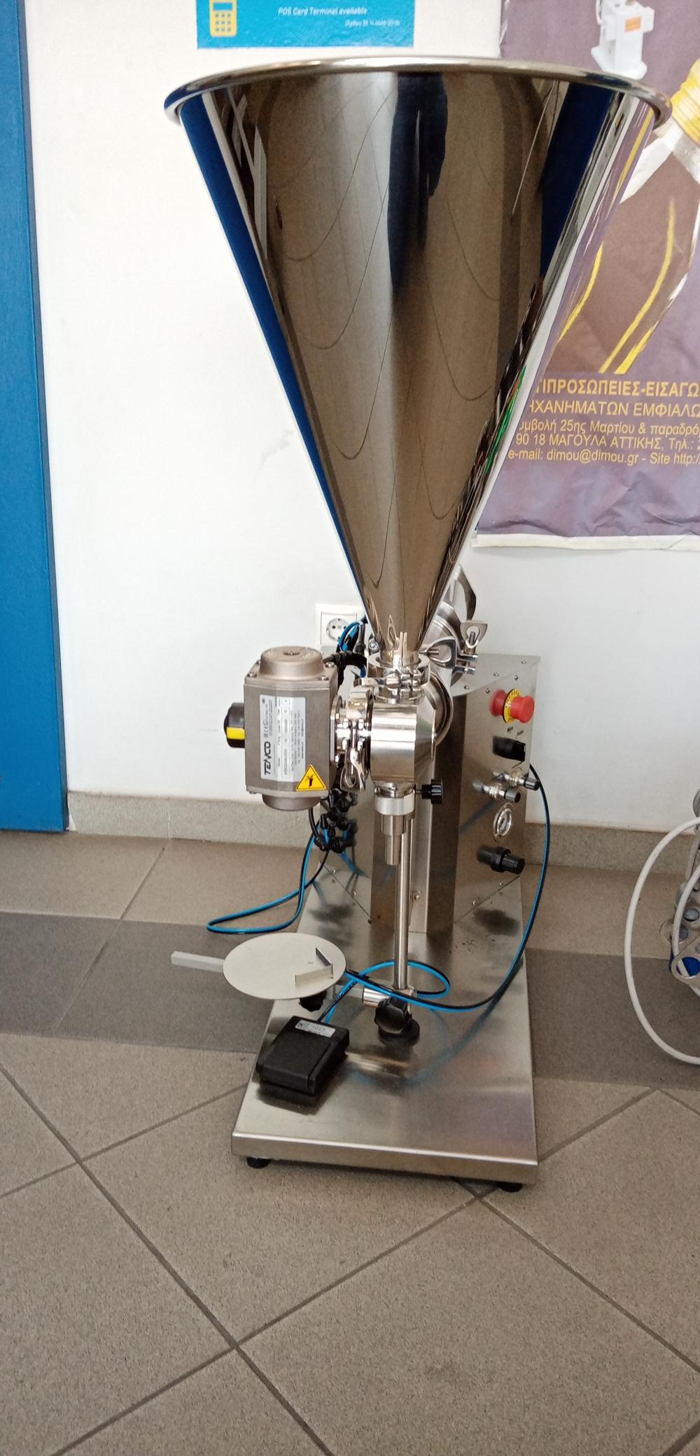 Η ως άνω μηχανή κατάλληλη για την συσκευασία γενικά παχύρευστα προϊόντα σε γυάλινους ή πλαστικούς περιέκτες.