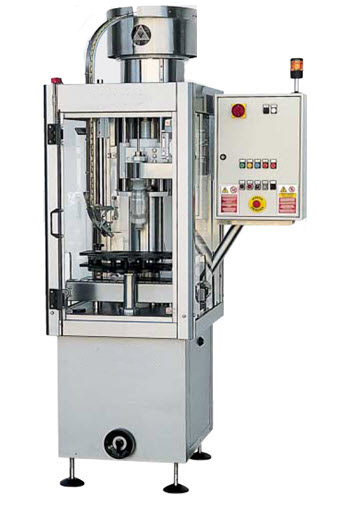 Η ως άνω μηχανή είναι κατάλληλη για τον πωματισμό γυάλινων και PET κυλινδρικών φιαλών με το ίδιο μεταλλικό βιδωτό πώμα.